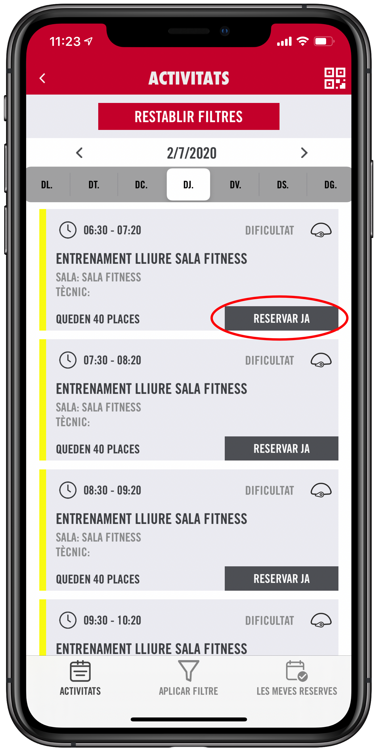 Accedeix a l’apartat ACTIVITATS / RESERVES