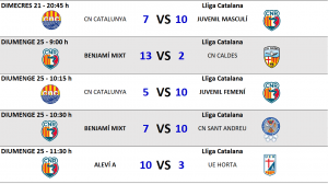 Ara l’activitat s’atura fins després de les festes de setmana Santa per a la majoria d’equips, excepte pels més petits. Els nostres benjamins disputaran durant aquest dies la sisena edició del torneig internacional “BCN WP UNDER 10”, que es disputarà a les piscines del CN Barcelona. Molta sort!