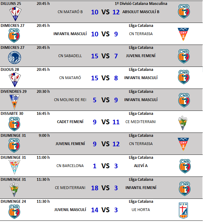 Per la seva part, l’equip absolut masculí va caure a casa davant de la UE Horta, per una ajustadíssim 8-9. Aquest dissabte el nois del Dani Gomez visiten la piscina del CN Montjuic. Molta sort!