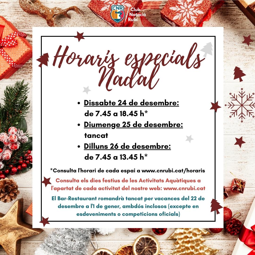 A la imatge inferior pots consultar els horaris especials de Nadal per als propers dies.