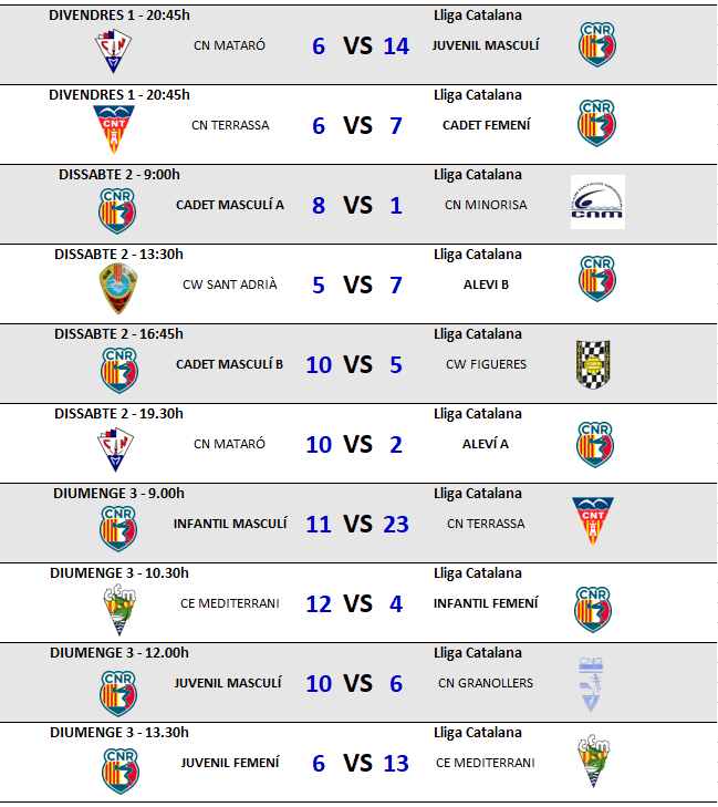 Aquest dissabte no tenim competicions, i ens emplacem al proper cap de setmana del 16 i 17 de desembre.